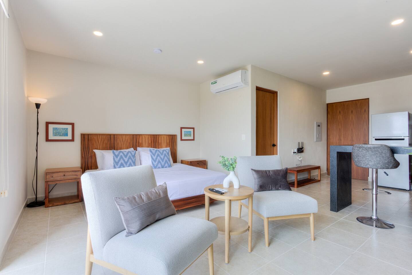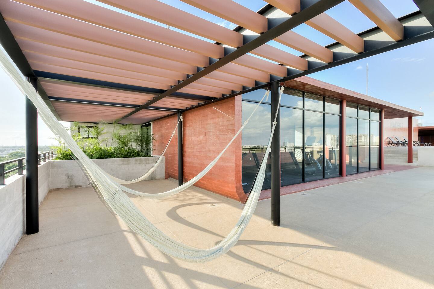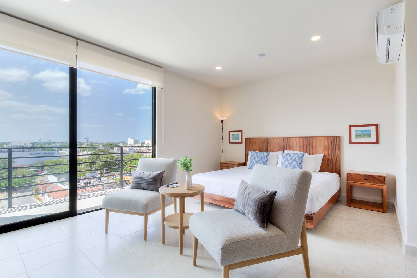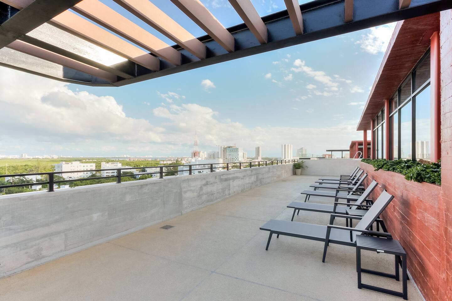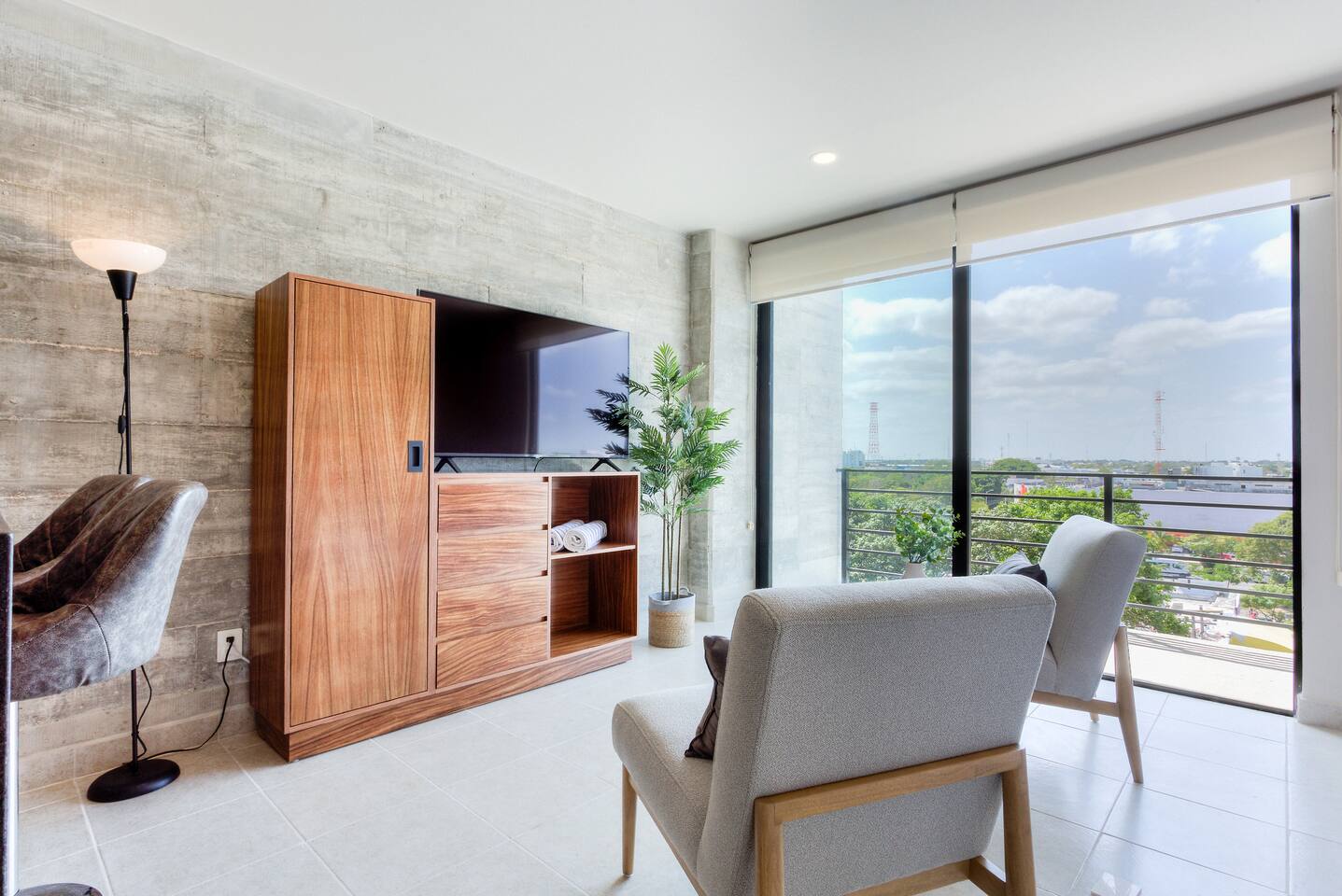 Centrally located on Av. Nader, Cancun's heart. Enjoy 24/7 security, pool, gym, high-speed wifi, and coworking space. Steps from restaurants, supermarkets, and bars, with direct transport to the Hotel Zone just meters away. Ideal for travelers seeking comfort, style, and a central location.