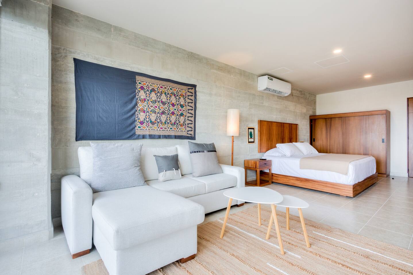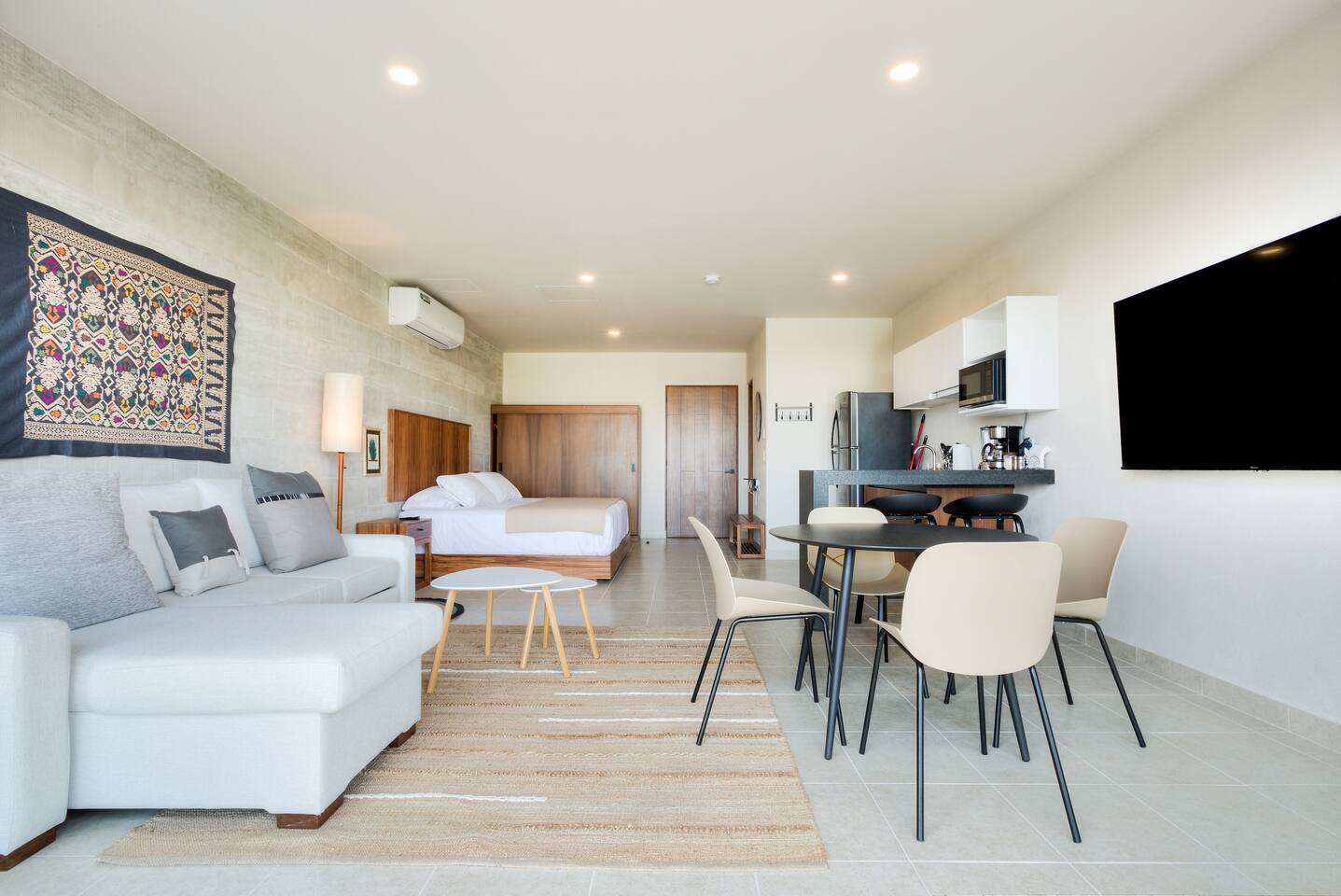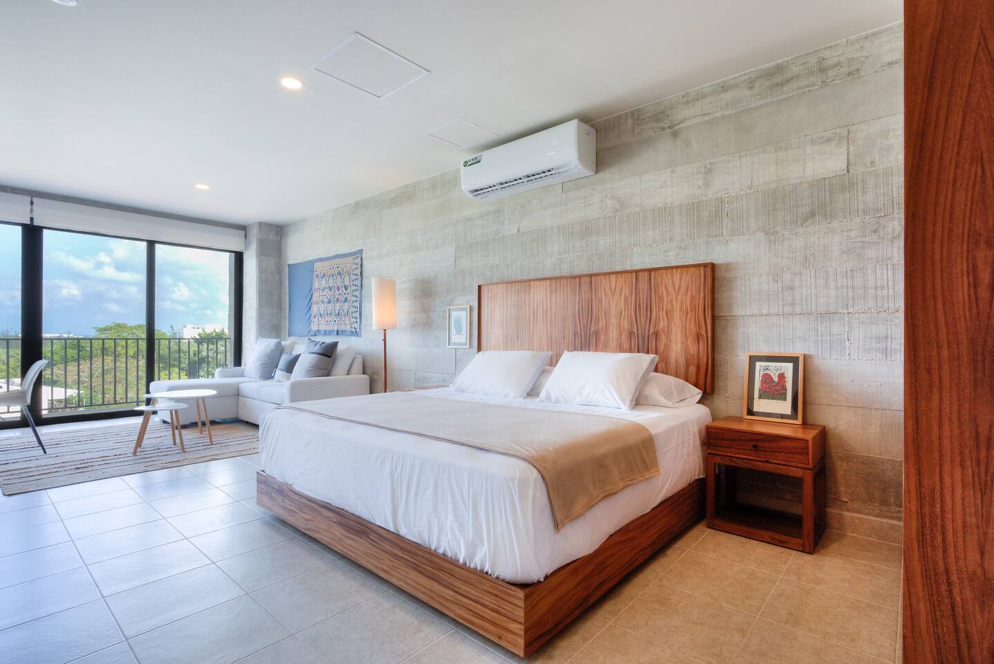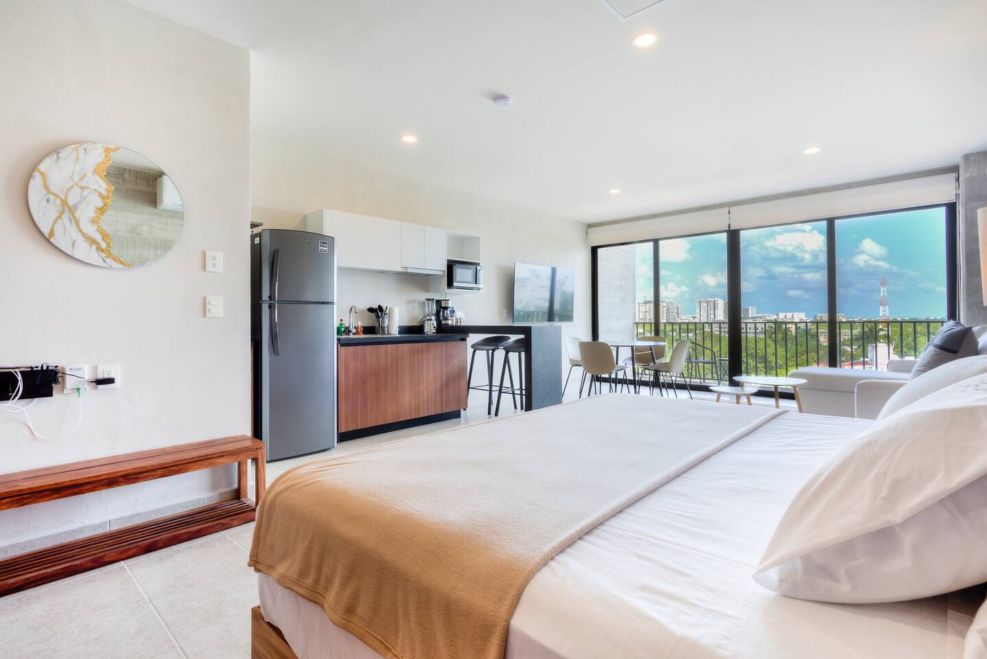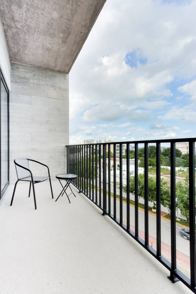 Centrally located on Av. Nader, Cancun's heart. Enjoy 24/7 security, pool, gym, high-speed wifi, and coworking space. Steps from restaurants, supermarkets, and bars, with direct transport to the Hotel Zone just meters away. Ideal for travelers seeking comfort, style, and a central location.