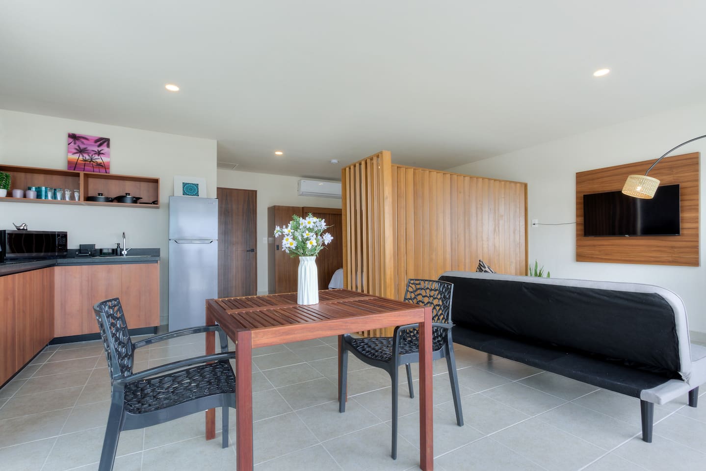 📍 Key Points Near the Apartment Local Restaurants and Cafes: 🍴 Just a 3-minute walk to enjoy delicious meals or a morning coffee at local restaurants and cafes. El Tigre y El Toro 🍕 Famous for its artisan pizza 📍 5-minute walk Kotaro 🍣 Renowned for its ramen 📍 5-minute walk Sigfrido 🍽️ A speakeasy with live music on Thursdays, Fridays, and Saturdays starting at 10:00 PM 📍 4-minute walk Café Nader ☕ The perfect spot for breakfast, coffee, and Mexican cuisine 📍 2-minute walk El Pescado Ciego 🐟 Specializes in seafood with a unique style 📍 6-minute walk La Fonda del Zancudo 🌮 Creative cuisine in a charming and relaxed atmosphere 📍 7-minute walk Supermarkets and Pharmacies: 🛒 Supermarkets and pharmacies are just a 5-minute walk, perfect for quick shopping or any needs during your stay. Public Transportation Stops: 🚌 Bus stops to the Hotel Zone and other points of interest are only a 2-minute walk from the building entrance