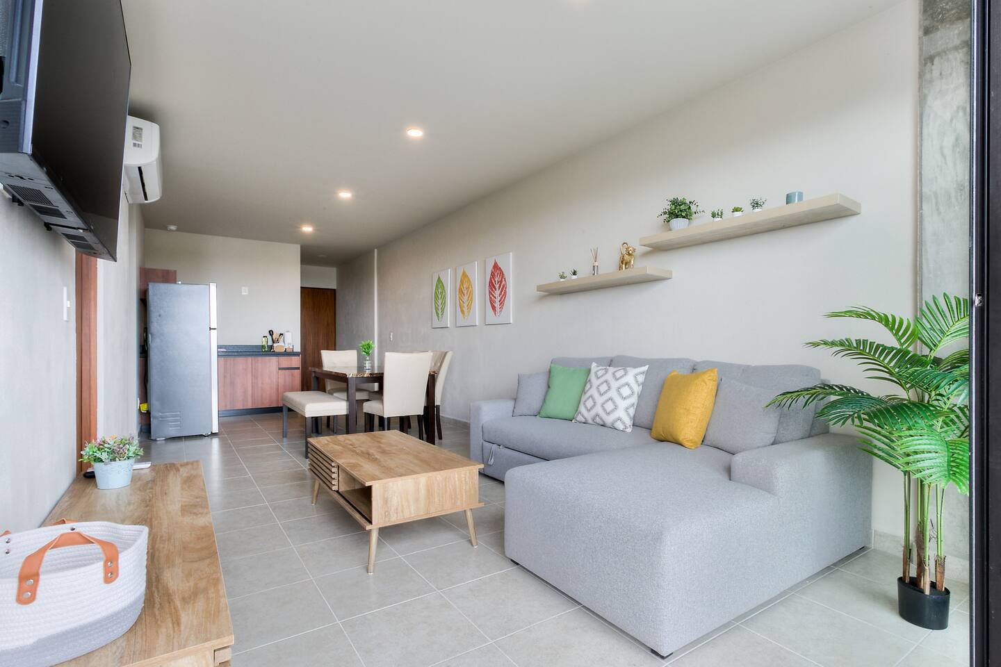 Apartment on Av. Nader! Live in the Heart of Cancun! Located in one of the most vibrant areas of the city, this apartment offers 24/7 security, a pool, high-speed wifi, a gym, and coworking space. Just steps away, you'll find restaurants, bars, and supermarkets, as well as direct transport to the Hotel Zone. Perfect for those seeking comfort, style, and a prime location to explore Cancun.